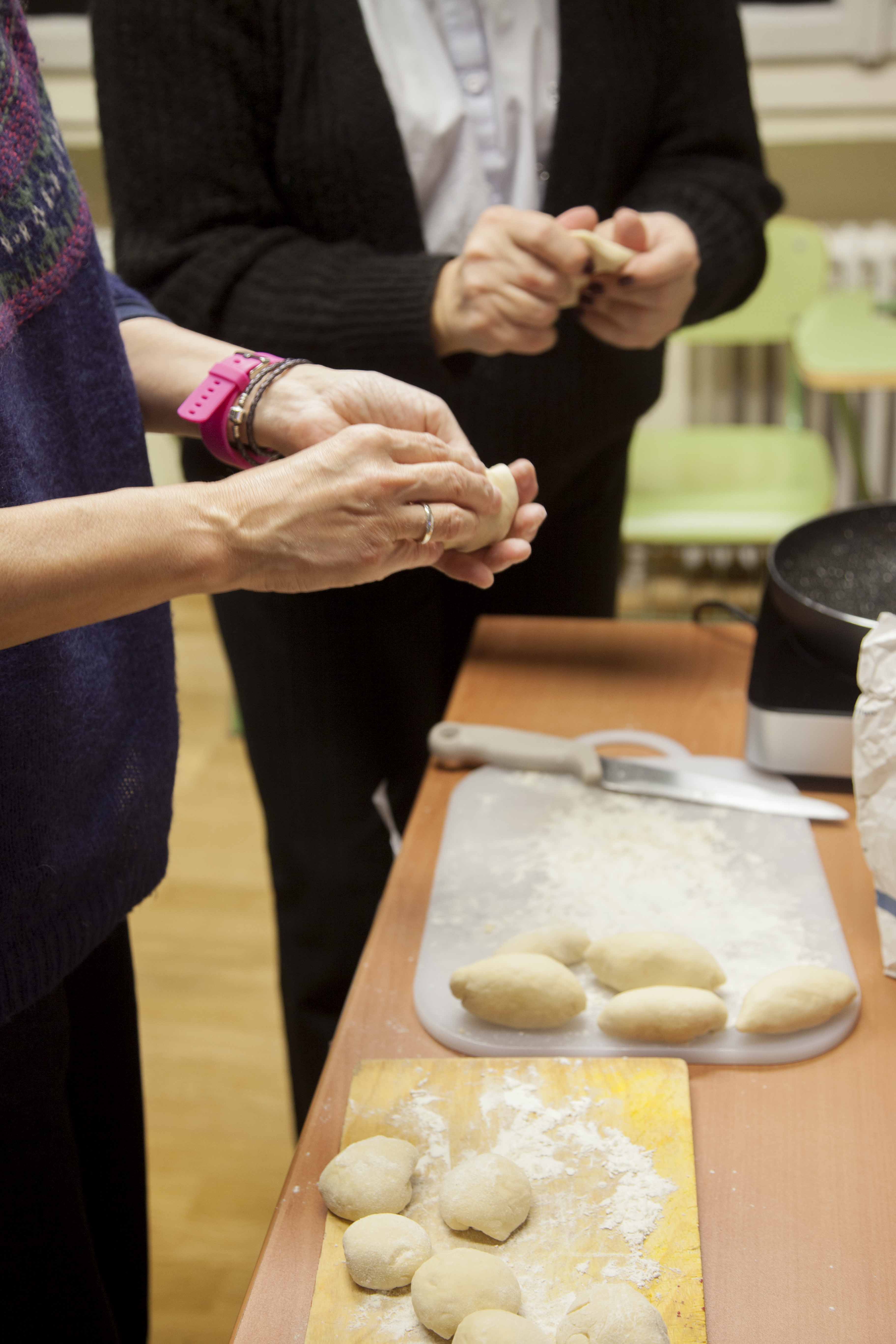 Después, nos dispusimos a preparar nuestros propios пирожкиrellenos de repollo y carne.
