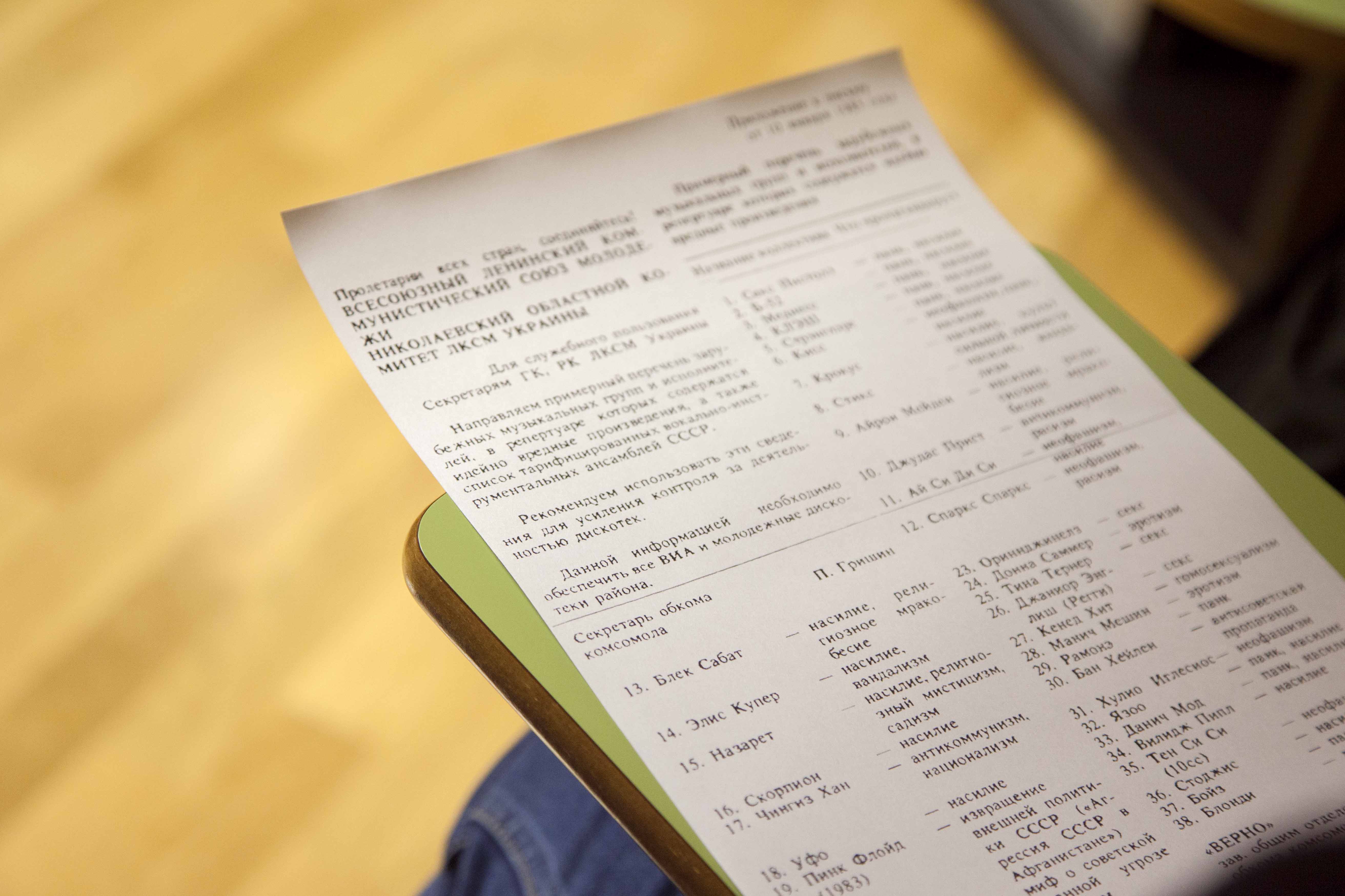 Conocimos cómo se clasificaban los grupos musicales extranjeros, descritos según lo que representaban (violencia, anticomunismo, sadismo...) y cómo se censuraban en la época soviética.