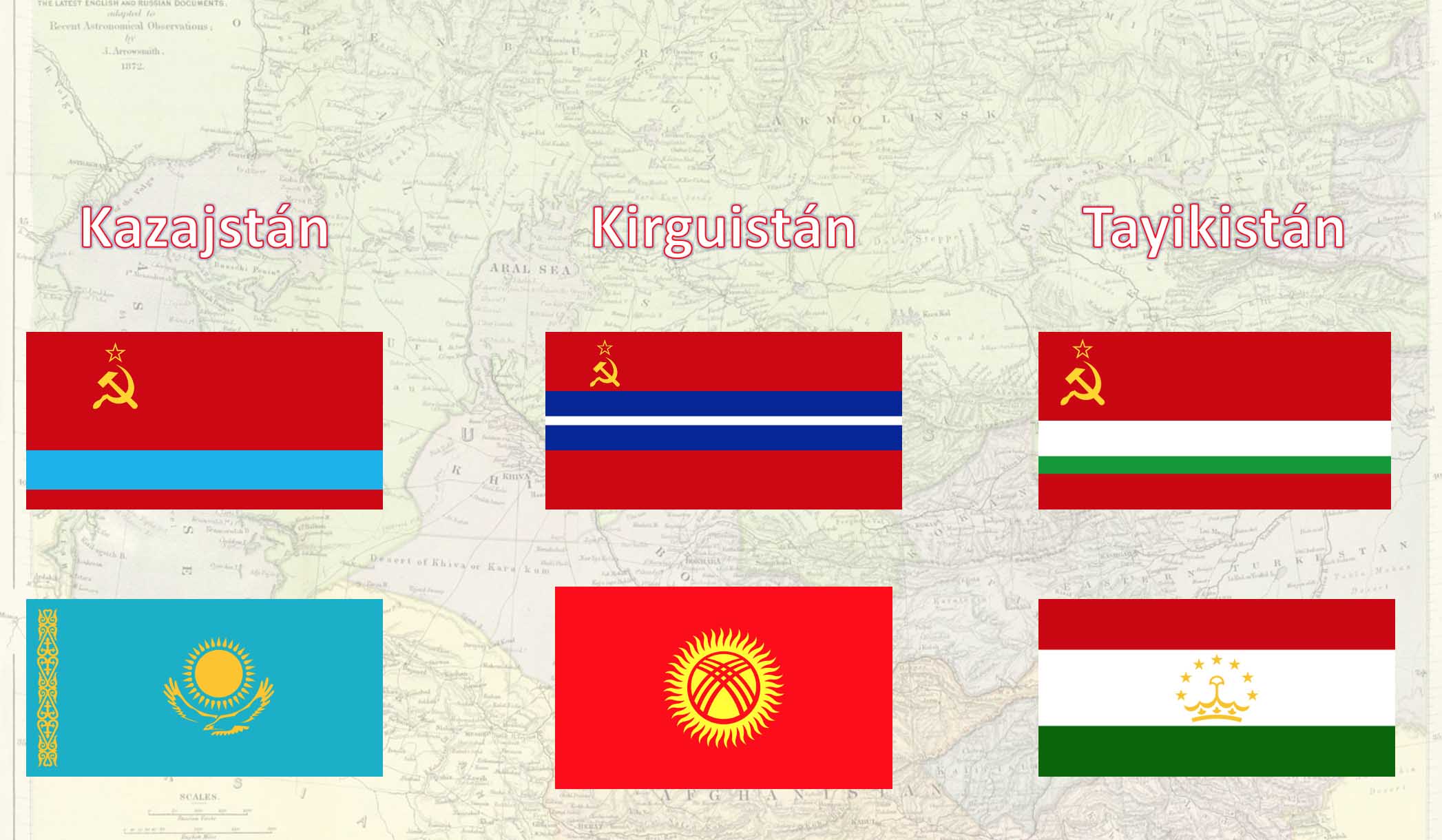 Al igual que en el caso de Turkmenistán y Uzbekistán, la andadura de estos tres países comienza con la disolución de la URSS en 1991, sin una tradición previa de construcción estatal.