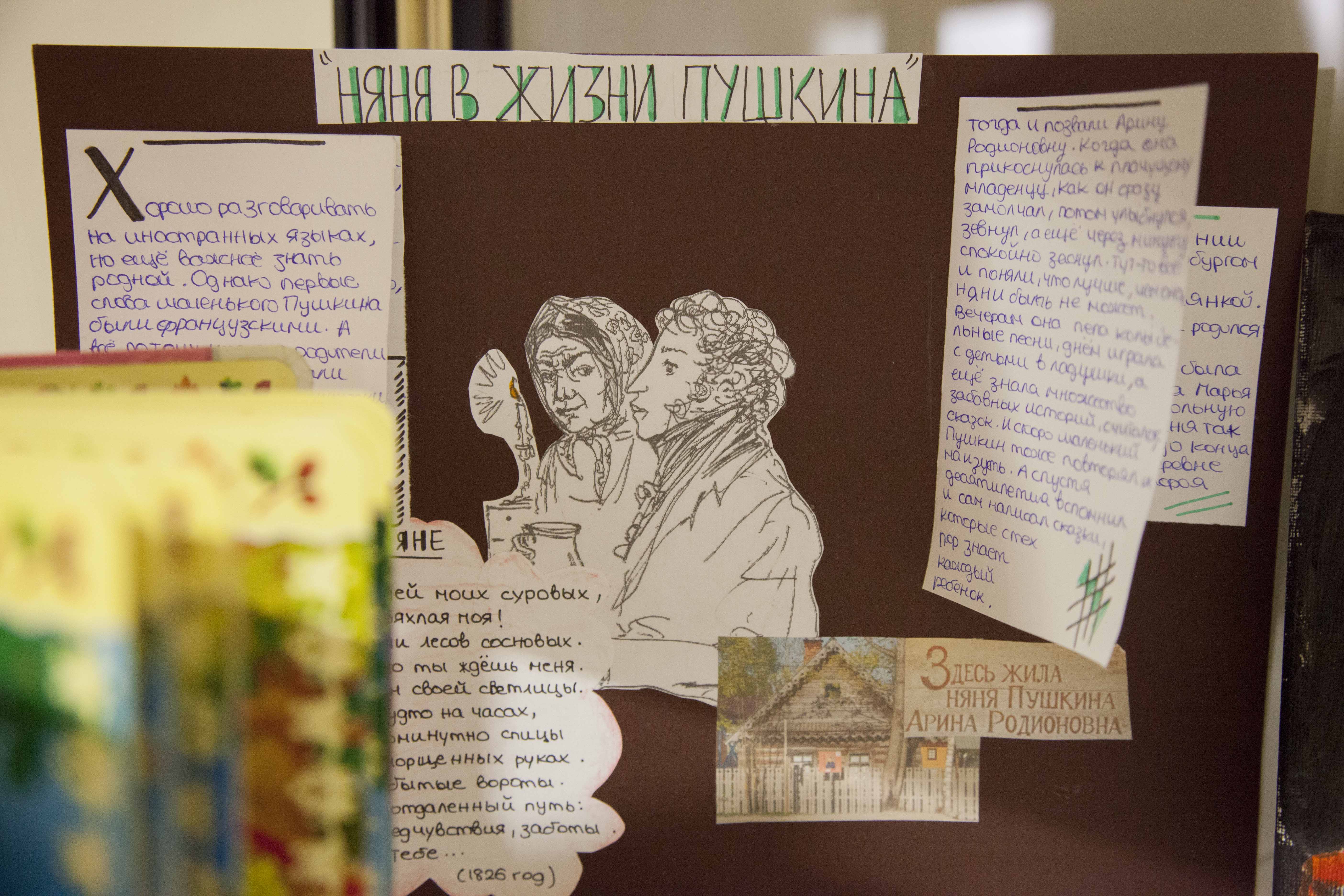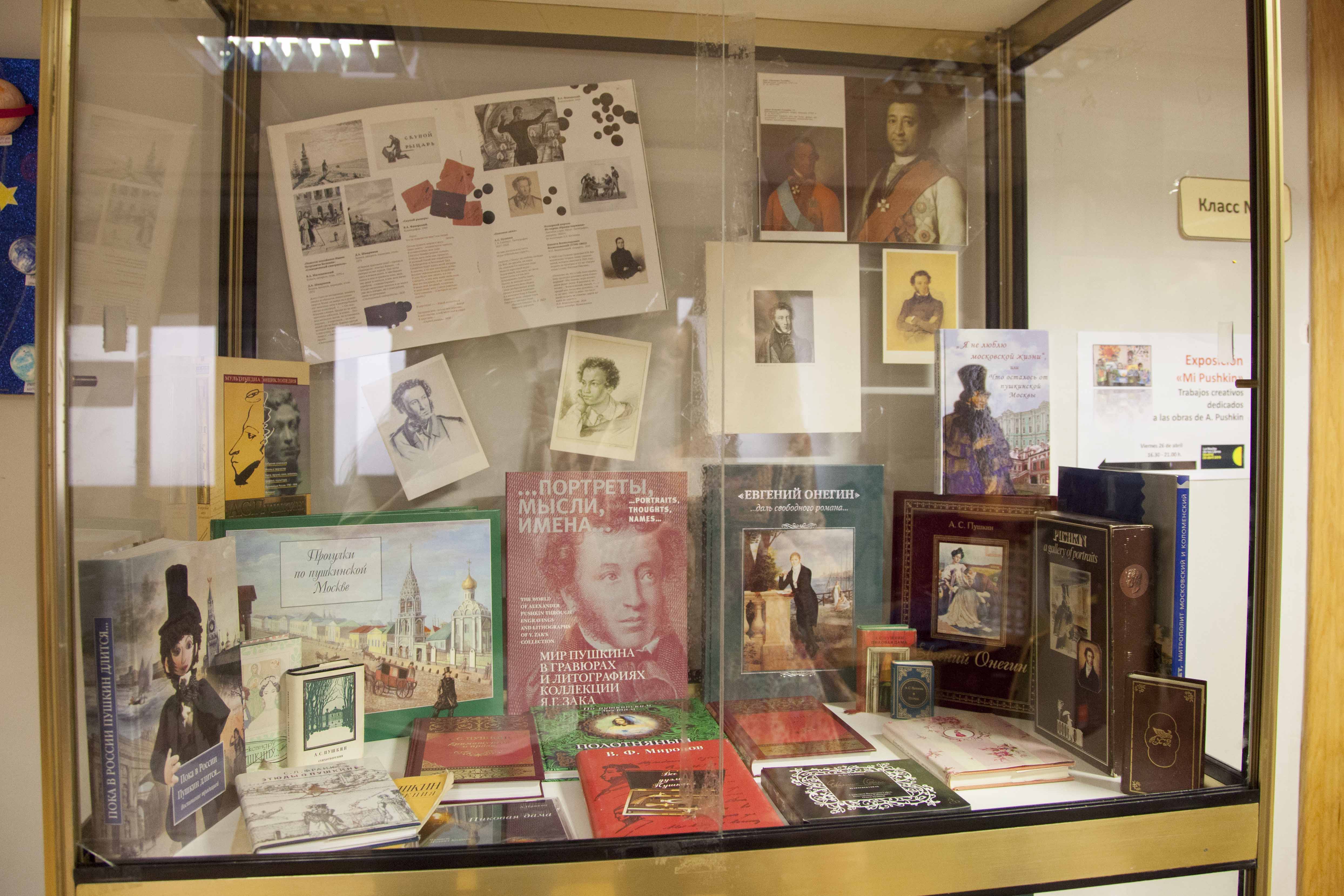 Por otro lado, los visitantes pudieron disfrutar de la exposición "Mi Pushkin", de trabajos creativos dedicados a la obra de A. Pushkin que leyeron los alumnos.