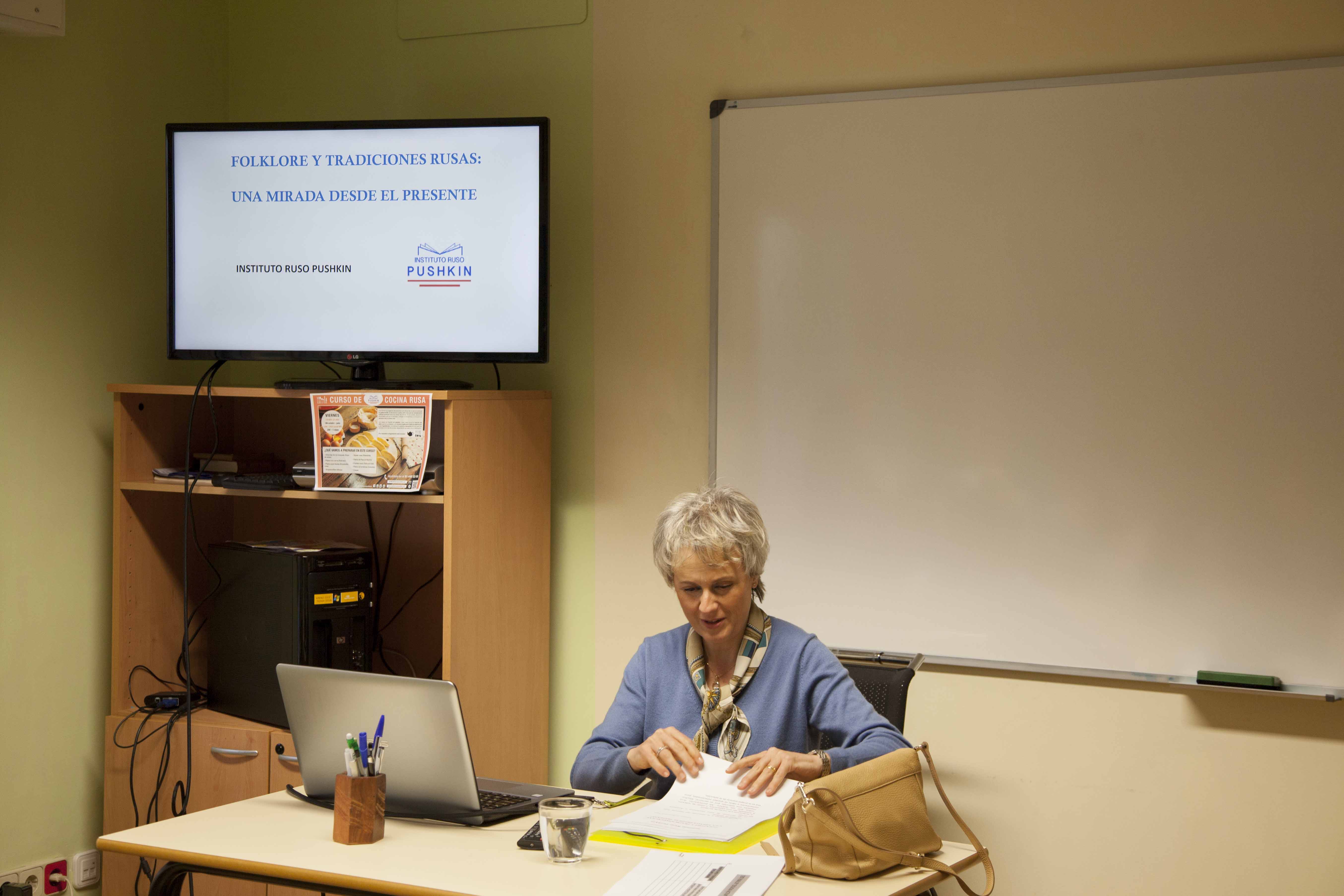 Por último, tuvo lugar la conferencia "Folklore y tradiciones rusas: una mirada desde el presente", impartida por Aida Fernández Bueno, profesora de lengua y literatura rusas en la Facultad de Filología de la Universidad Complutense de Madrid, y miembro del grupo de investigación "Estudios Ibero-Eslavos: traducción, recepción y comparatismo".