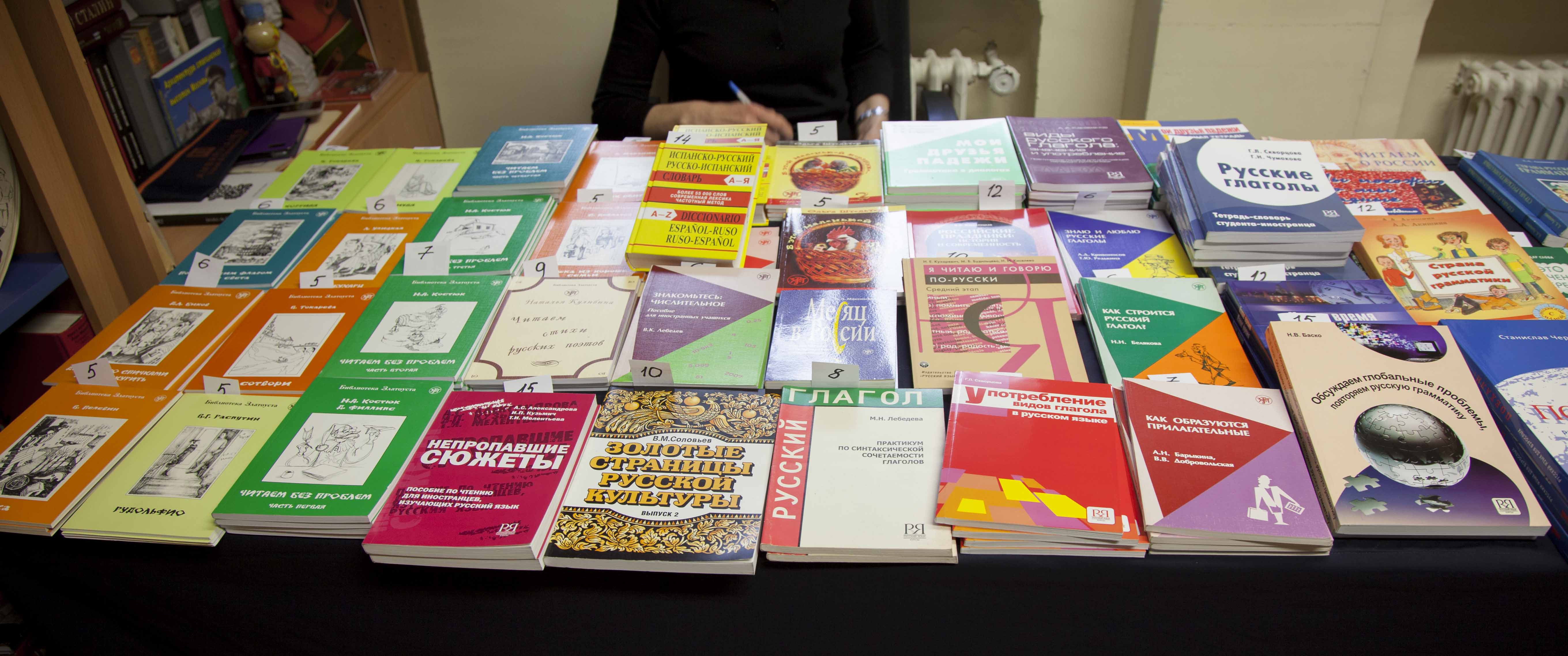 También contamos con la exposición "Estudiamos ruso, leemos ruso" de libros y métodos de enseñanza del ruso como lengua extranjera de una de las editoriales rusas más importantes del sector: "Russkiy yazik. Kursy".