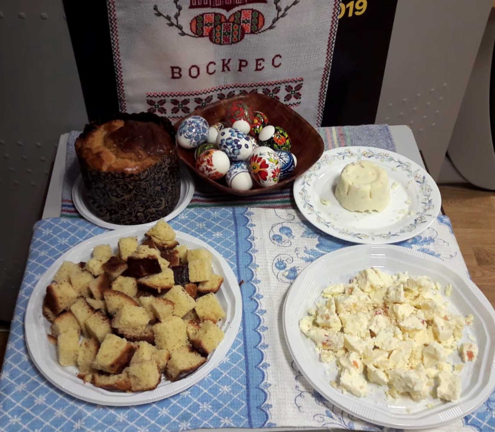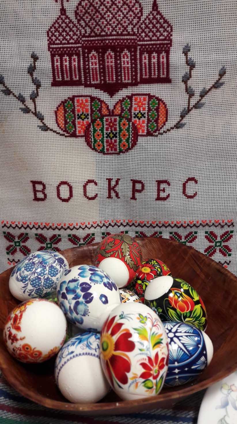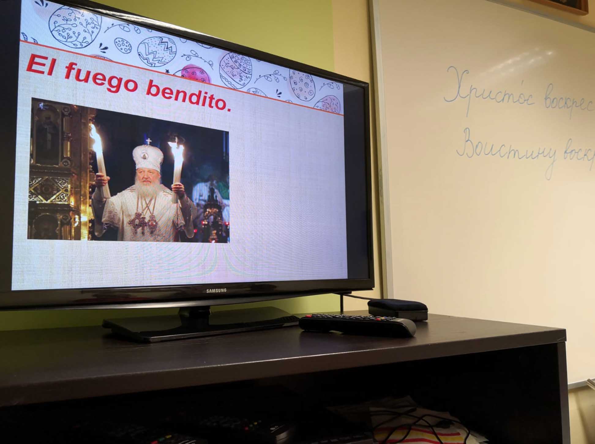 Emilia nos habló de la tradición de pintar huevos (крашеные яйца), de las procesiones, de la mesa y platos típicos durante la Pascua, del fuego bendito, de las postales, de la tradiciónsoviética del cementerio y de las tradiciones más propias de la actualidad.
